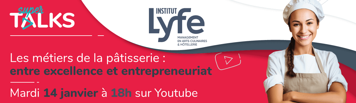 Nous t’invitons à explorer les coulisses de ces métiers avec des experts tout droit venus de l’Institut Lyfe : Johanna EDELBLOUDE, directrice académique, Joannic TATON, chef exécutif pâtisserie et Marguerite BREHON, étudiante en 3ᵉ année de bachelor management international de la pâtisserie.
