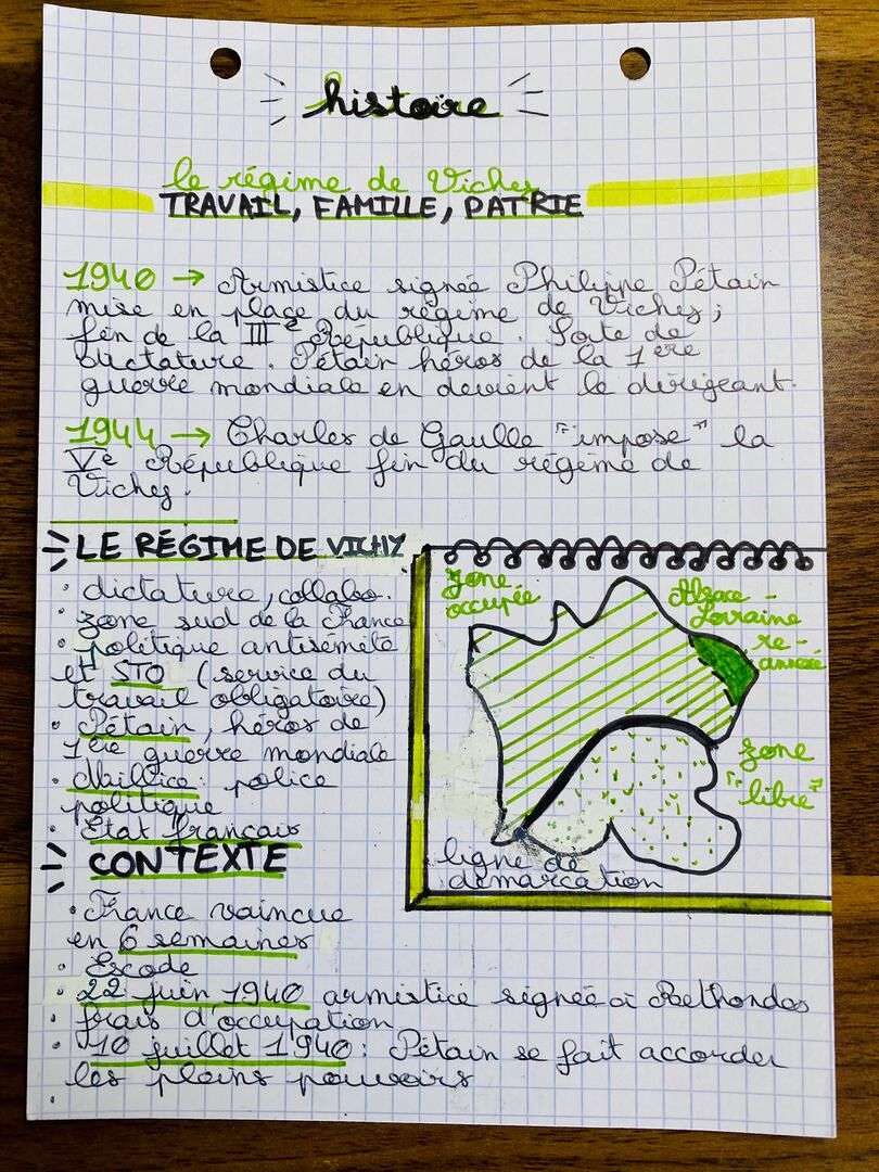 Ce nouveau régime, appelé État français, met fin à la République et instaure un pouvoir autoritaire fondé sur la « Révolution nationale ». Il rejette les valeurs républicaines de liberté et d’égalité, prône le travail, la famille et la patrie, et choisit de collaborer avec l’Allemagne nazie.