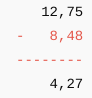 Comme pour les entiers, on peut effectuer la soustraction directement en ligne.