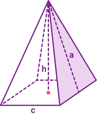 n le nombre de coté, c la mesure du coté, et a l’apothème (la longueur à partir du milieu d'une arête quelconque de la base jusqu'au sommet de la pyramide)
