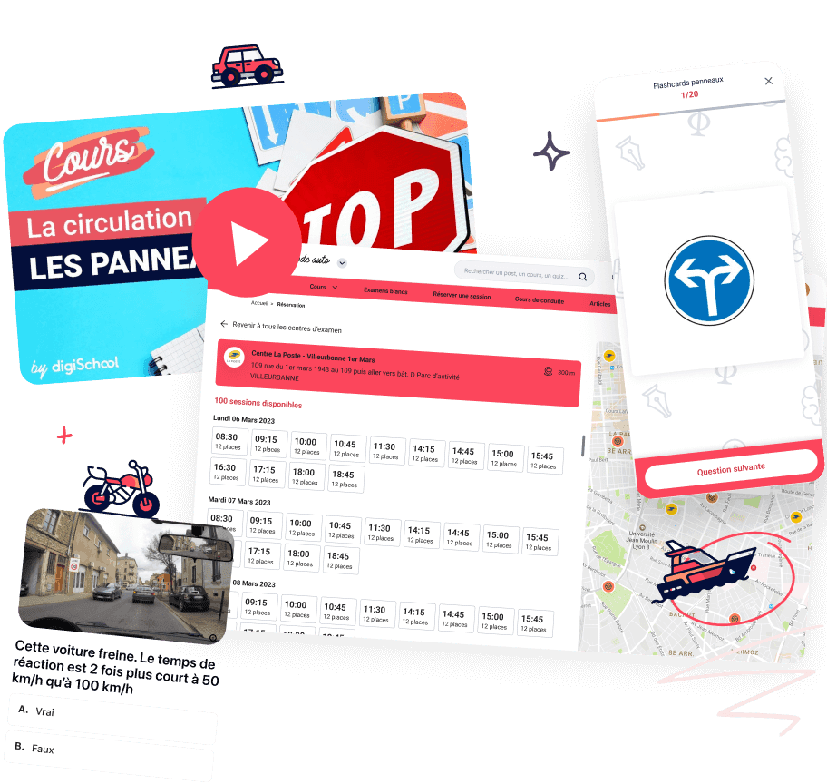 La solution pour se préparer aux codes auto, moto et bateau et réserver le passage de l’examen officiel